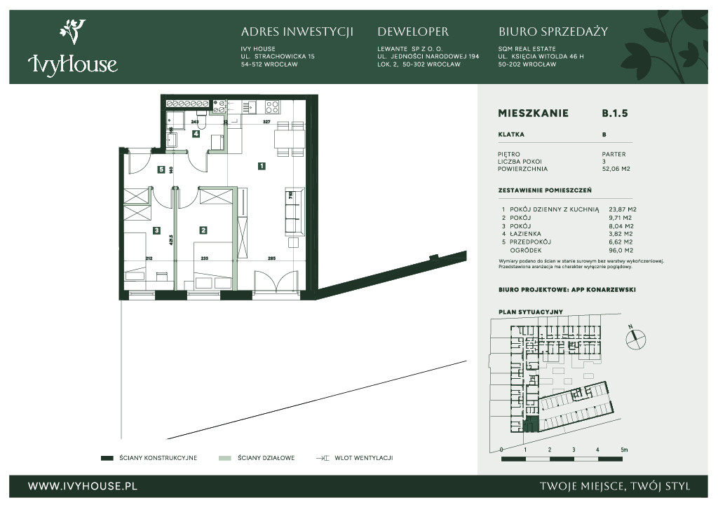 | B.1.5 | Parter | 52,06 M2 | 3 | Ogródek | 640 338,00 zł | dostępne | |||||||||||||||||||||||||||||